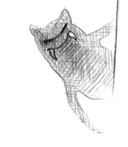 Under sängen kom det fram en mörk gestalt med klena armar och uppsvälld mage. Han kasade sig fram mot Jenni, som gled ner till golvet, medan hennes mun gav ifrån sig tysta skrik. Skepnaden grinade brett och blottade sina långa, nålliknande tänder. Han kacklade hest.